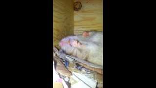 Adult rat sleeping on its back showing twitches across the whole body